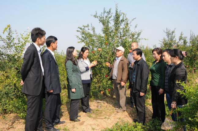 舒安娜主委在滎陽(yáng)市領(lǐng)導(dǎo)陪同下,在滎陽(yáng)高村鄉(xiāng)劉溝村石榴基地進(jìn)行了實(shí)地調(diào)研。專家們?cè)谑穹N植園詳細(xì)了解各農(nóng)戶的種植面積、畝產(chǎn)、銷售及育苗、施肥、田間管理等種植技術(shù)問(wèn)題,并對(duì)種植中的難點(diǎn)進(jìn)行了解答。