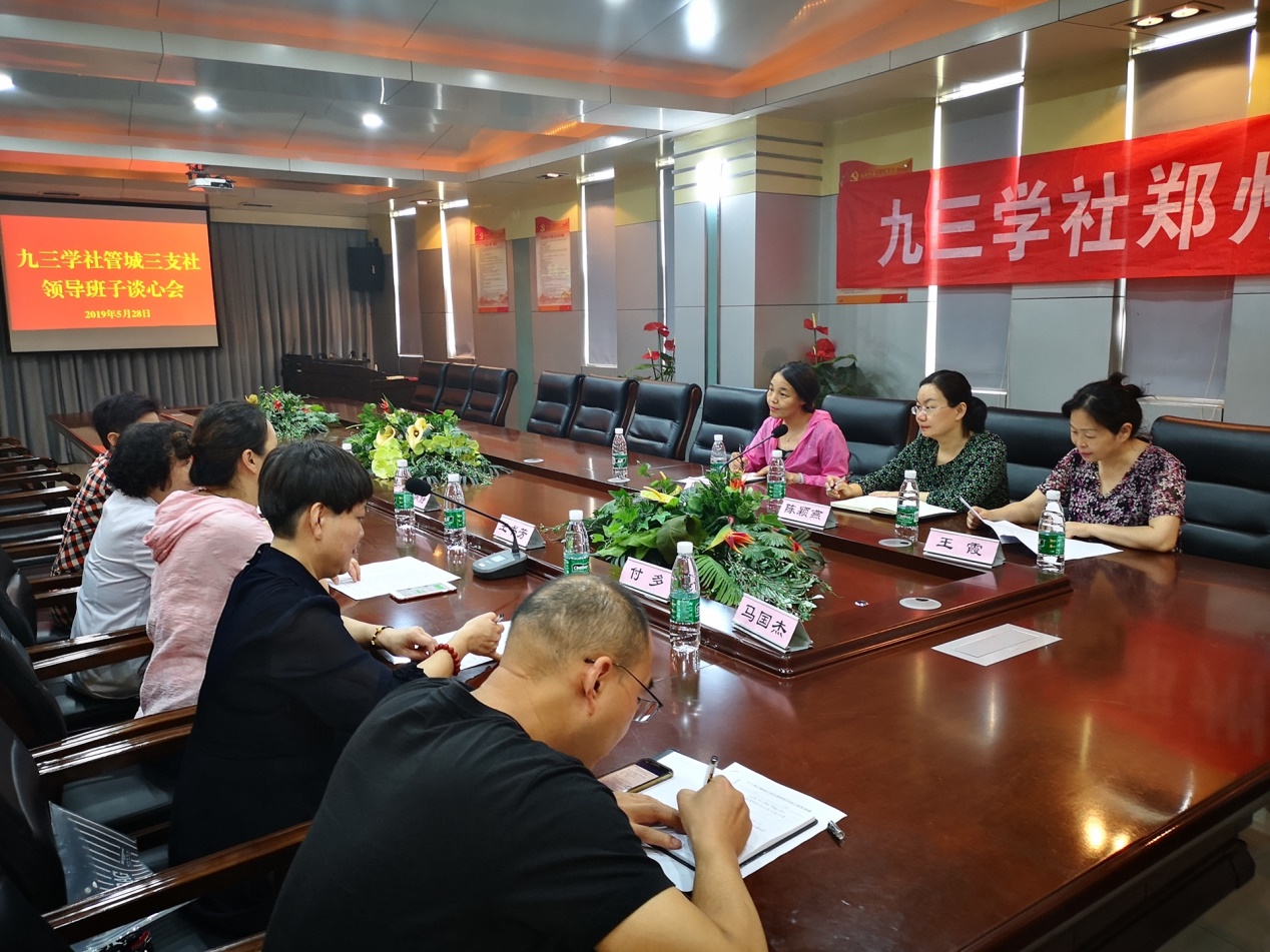 5月28日下午,九三學(xué)社鄭州市管城三支社領(lǐng)導(dǎo)班子談心會在鄭州市第三人民醫(yī)院門診六樓會議室召開。主委王書芳,副主委王嫻靜、陳新云、付多參加會議。社市委委員王霞、陳潁燕,社市委監(jiān)督委員會委員馬艷紅出席會議。會議由王書芳主持。