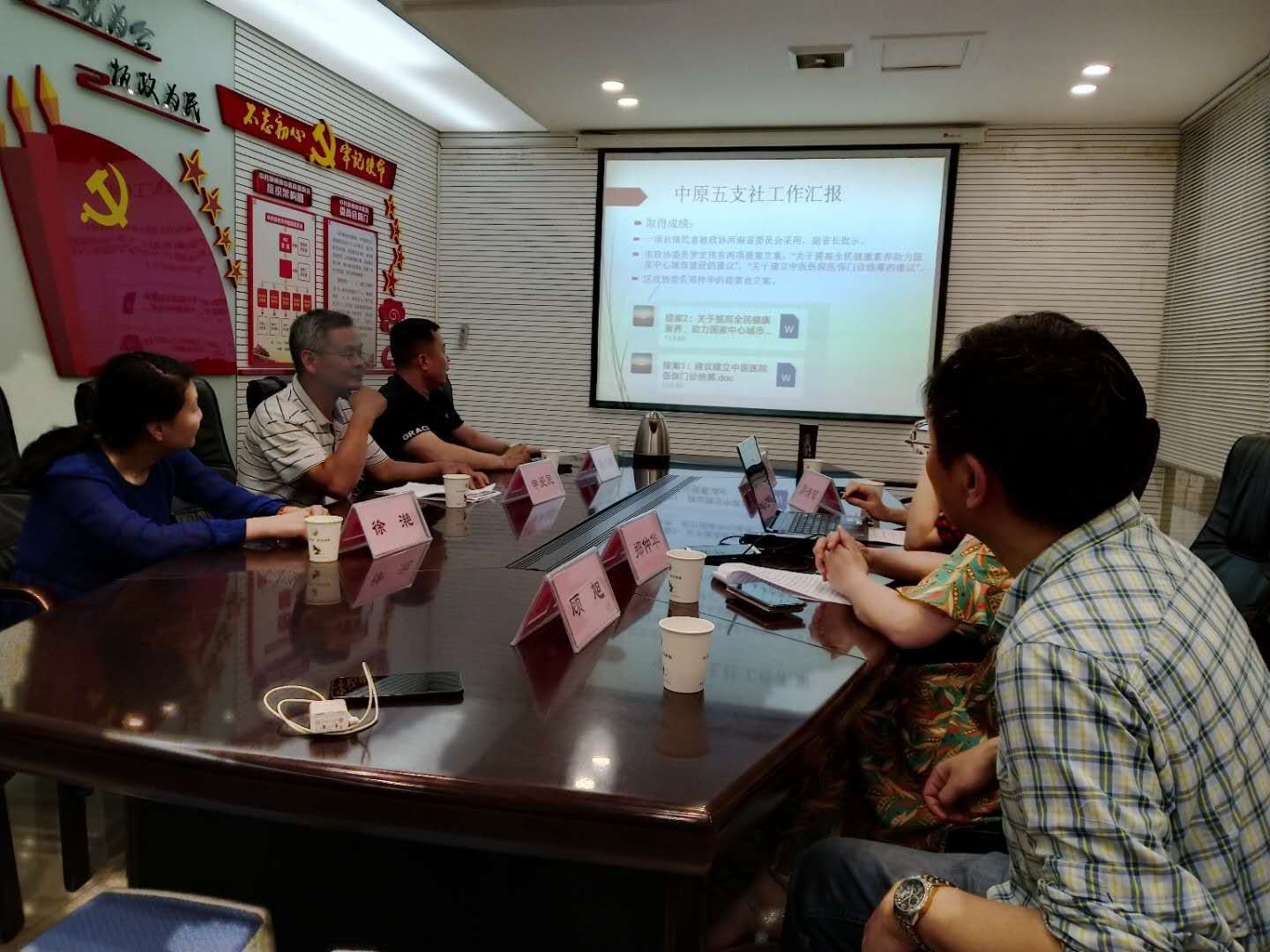 5月31日下午,九三學(xué)社中原五支社在鄭州市中醫(yī)院會(huì)議室召開(kāi)領(lǐng)導(dǎo)班子談心會(huì),支社主委羅清菊,副主委羅宏偉、鄭仲華、顧旭參加。社市委委員申愛(ài)民、徐滟,社市委監(jiān)督委員會(huì)委員劉志勇應(yīng)邀參加會(huì)議。