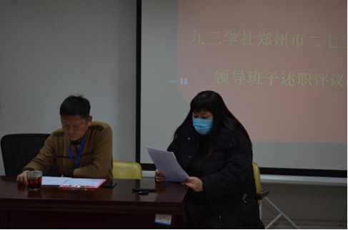 12月19日,九三學(xué)社鄭州市二七三支社在二七區(qū)婦幼保健所會議室召開領(lǐng)導(dǎo)班子述職評議會。社市委副主委黃萬新,社市委委員黃偉東,社市委監(jiān)督委副主任劉本彩應(yīng)邀出席。會議由支社主委邊東亮主持,副主委閆志軍、李功福、李秋鴿及部分社員參加。