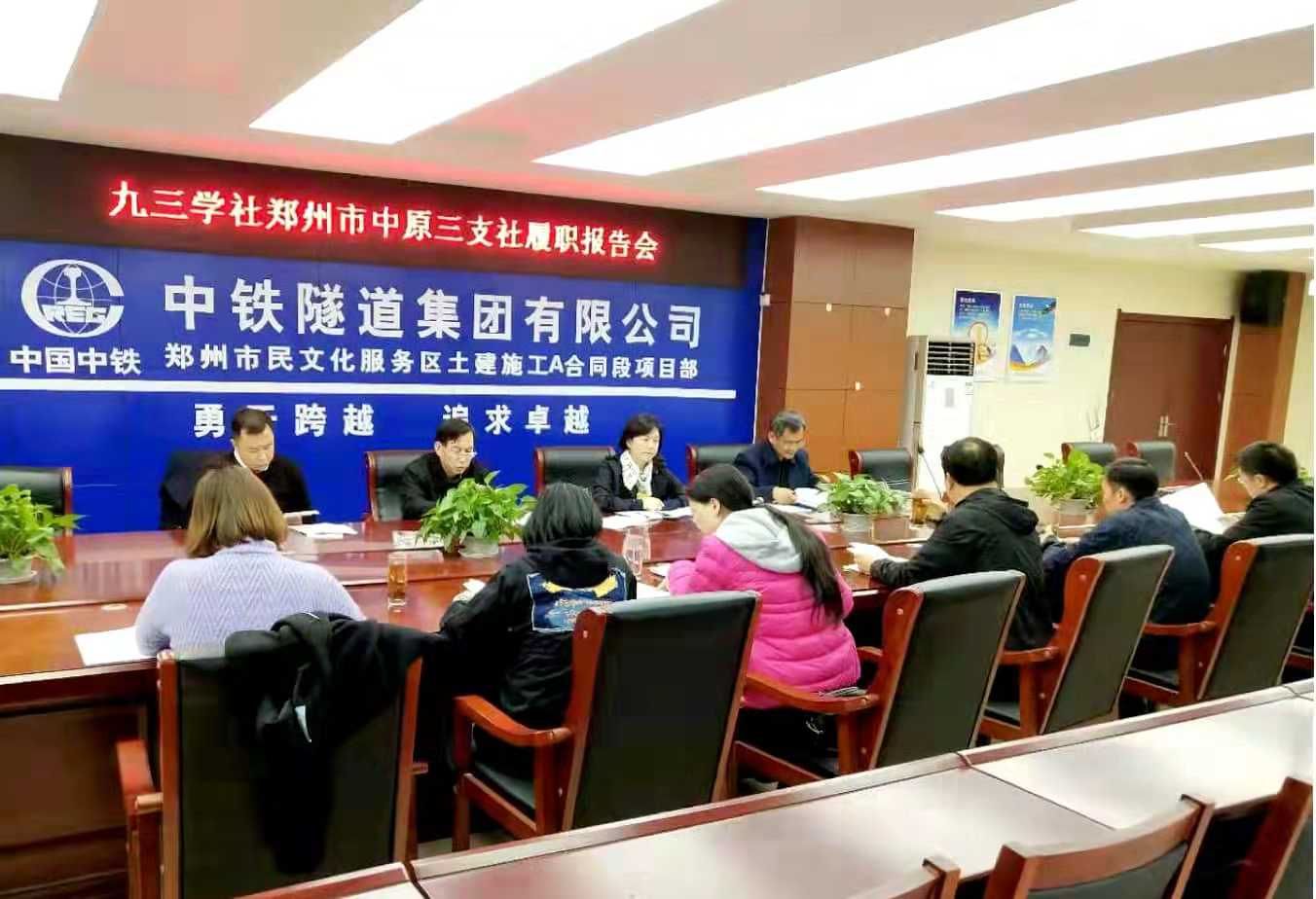 11月10日下午,九三學(xué)社鄭州市中原三支社在鄭州市民文化服務(wù)區(qū)地下交通工程土建項(xiàng)目部召開履職報告會,支社領(lǐng)導(dǎo)班子全體成員和骨干社員代表參加了會議。會議由支社主委王健主持。社市委副主委李秋紅,社市委委員申愛民,社市委監(jiān)督委員會副主任李琳,社市委監(jiān)督委員會委員劉志勇應(yīng)邀出席會議。