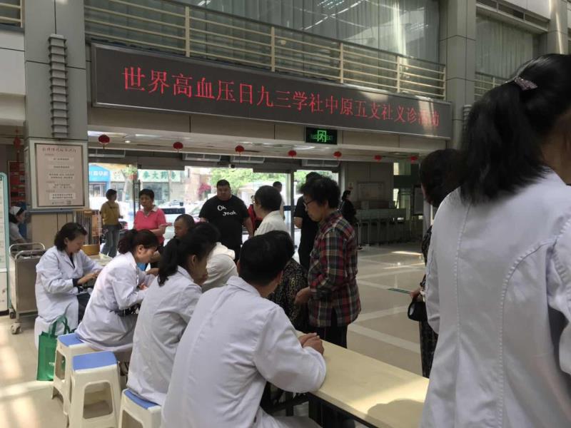 5月17日,九三學(xué)社中原五支社在鄭州市中醫(yī)院開展高血壓義診活動(dòng)。在支社主委、心血管專家羅青菊帶領(lǐng)下,全體社員結(jié)合自己專業(yè),為中醫(yī)院就診的高血壓患者進(jìn)行高血壓健康宣教,以及科學(xué)用藥的普及。