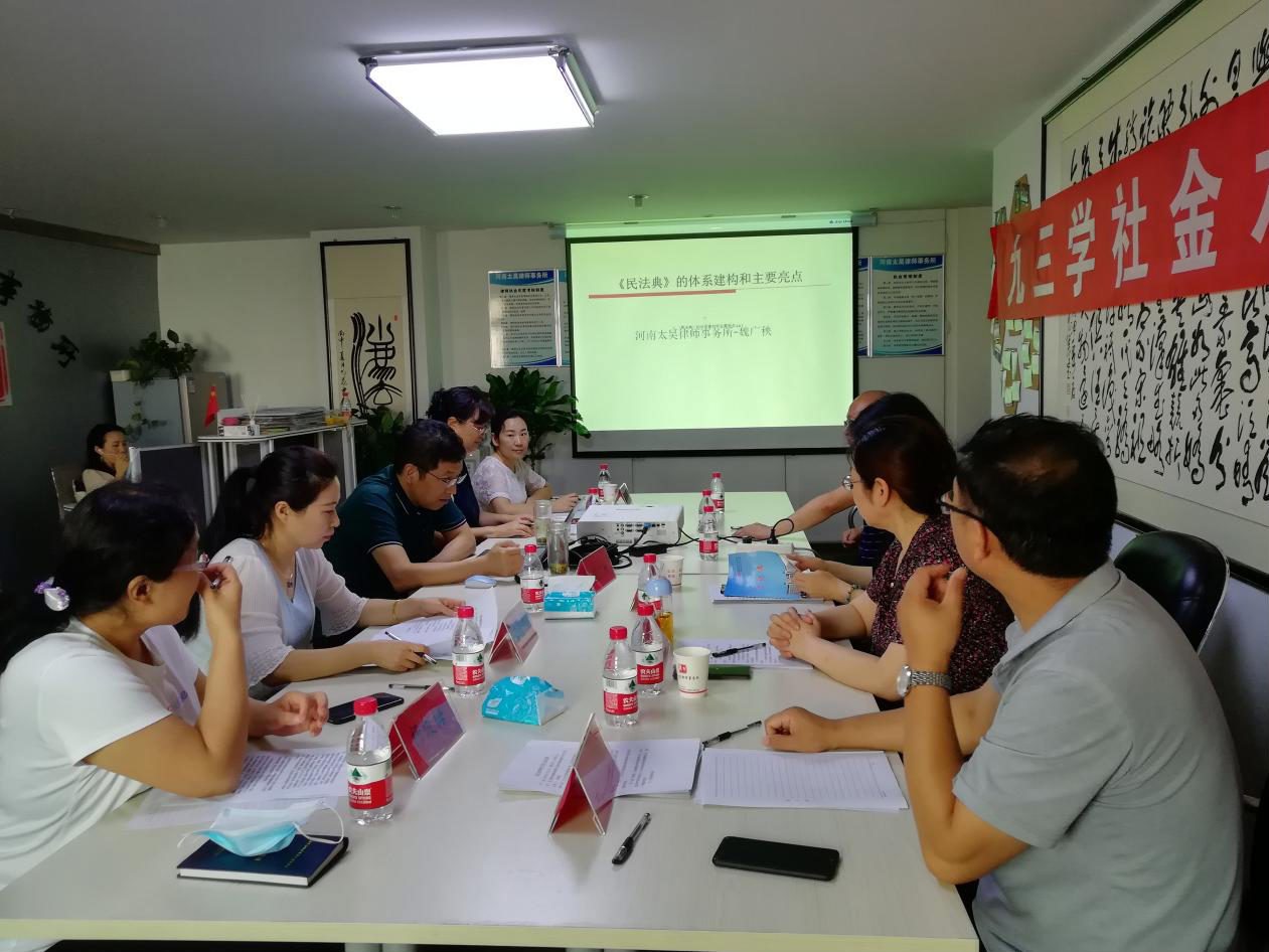 7月5日下午,九三學(xué)社鄭州市金水一支社組織社員在河南太昊律師事務(wù)所舉行《民法典》專題學(xué)習(xí)。社市委專職副主委何艷麗、市委委員黃偉東及金水一支社社員參加。