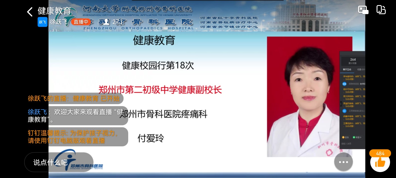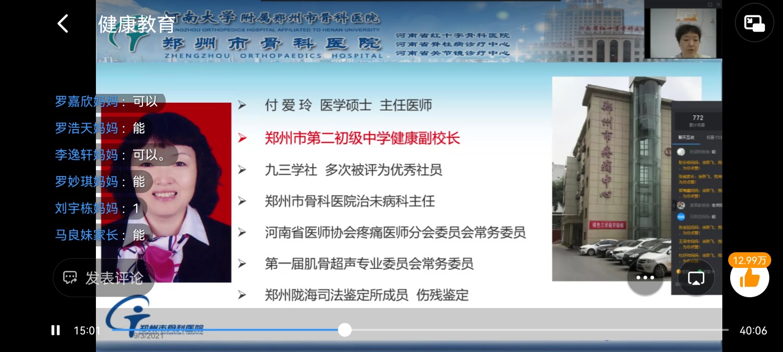 9月3日,九三學(xué)社鄭州市二七四支社主委付愛玲通過釘釘線上直播的方式,為鄭州市第二初級中學(xué)七年級新生舉辦了醫(yī)學(xué)健康科普知識講座。