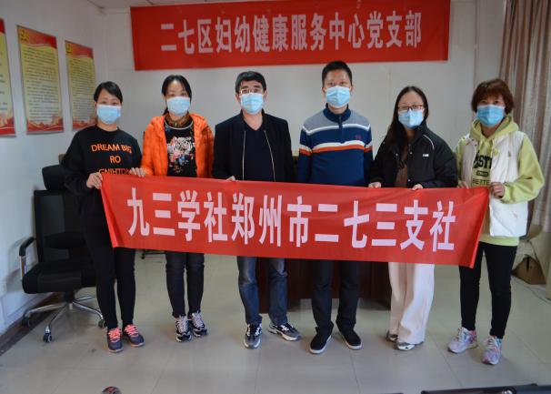 2021年12月2日,九三學(xué)社鄭州市二七三支社組織捐贈(zèng)活動(dòng),向鄭州市二七區(qū)婦幼健康服務(wù)中心捐贈(zèng)防疫物資。支社主委邊東亮及骨干社員參加活動(dòng)。