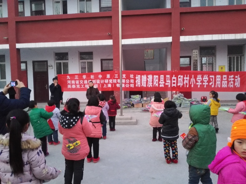 此次活動共籌資一萬余元,購買了書包、圖書等學(xué)習(xí)用品,捐贈給濮陽縣馬白邱小學(xué)。支社主委王健、副主委劉志剛、王雪玲及部分社員參加了此次捐贈活動。