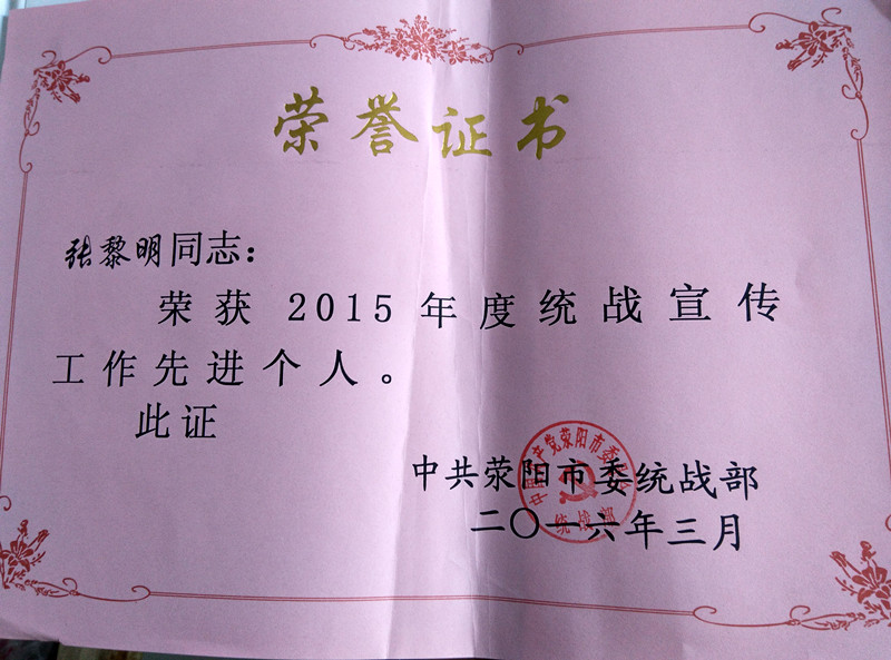 會議總結(jié)回顧了“十二五”期間全市統(tǒng)戰(zhàn)工作,分析當前形勢,并對新時期統(tǒng)戰(zhàn)工作的重點任務(wù)作了全面部署。會議對2015年全市統(tǒng)戰(zhàn)工作各領(lǐng)域涌現(xiàn)出來的先進單位和先進個人進行了表彰。九三學社鄭州市直一支社副主委丁恒被中共滎陽市委命名為2015年“肝膽杯”活動先進個人,社員張黎明被評為統(tǒng)戰(zhàn)宣傳工作先進個人。