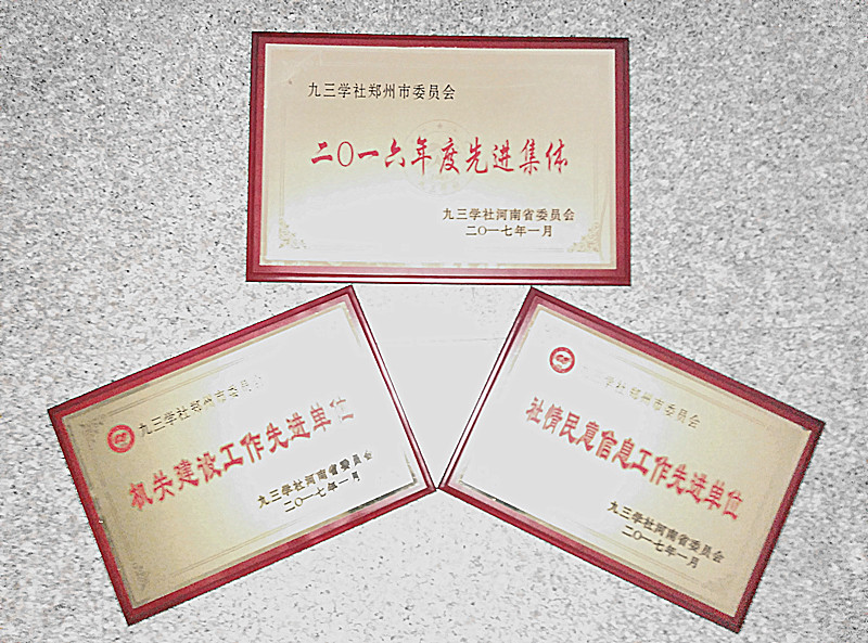 九三學(xué)社鄭州市委獲社省委年度工作先進(jìn)集體、社情民意信息工作先進(jìn)單位、機(jī)關(guān)建設(shè)先進(jìn)單位。管城基層委員會(huì)、二七一支社分別榮獲年度工作先進(jìn)基層單位稱(chēng)號(hào)。