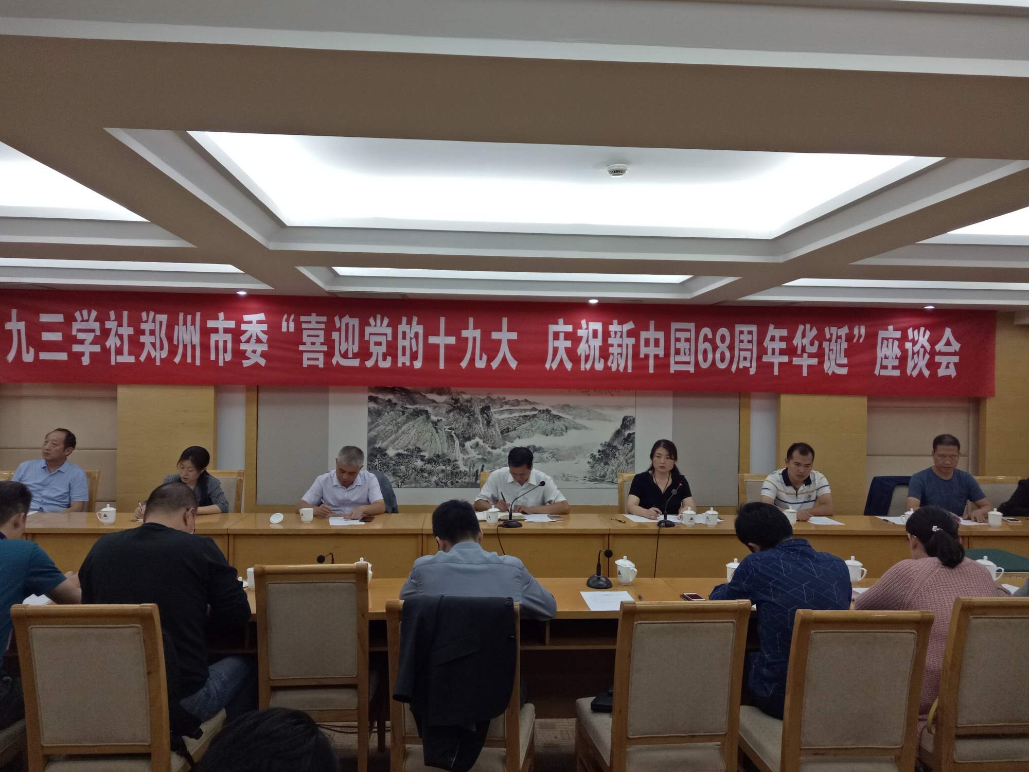 9月29日下午,九三學(xué)社鄭州市委“喜迎黨的十九大 慶祝新中國(guó)68周年華誕”座談會(huì)在嵩山飯店召開(kāi)。社市委主委鄭高飛,副主委劉崇懷、何艷麗,社市委委員,社市委監(jiān)委會(huì)委員及部分骨干社員40多人參加座談。會(huì)議由何艷麗主持。中共鄭州市委統(tǒng)戰(zhàn)部黨派處處長(zhǎng)楊飛雁、主任科員石林應(yīng)邀出席會(huì)議。
