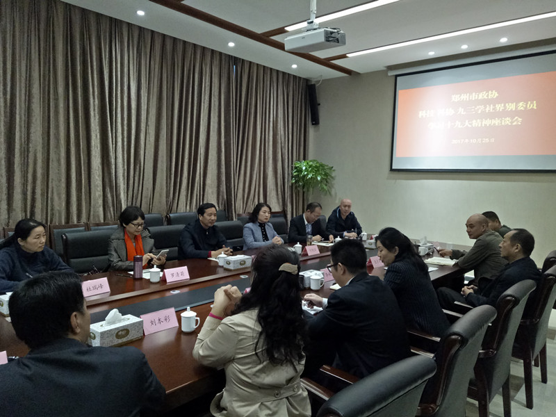 10月25日下午在鄭州市航空港綜合試驗(yàn)區(qū)召開了科技、科協(xié)、九三屆別市政協(xié)委員學(xué)習(xí)十九大精神座談會,九三學(xué)社鄭州市委主委鄭高飛,副主委李秋紅、何艷麗和鄭州市政協(xié)科技、科協(xié)、九三屆別委員近二十人參加。會議由李秋紅主持。