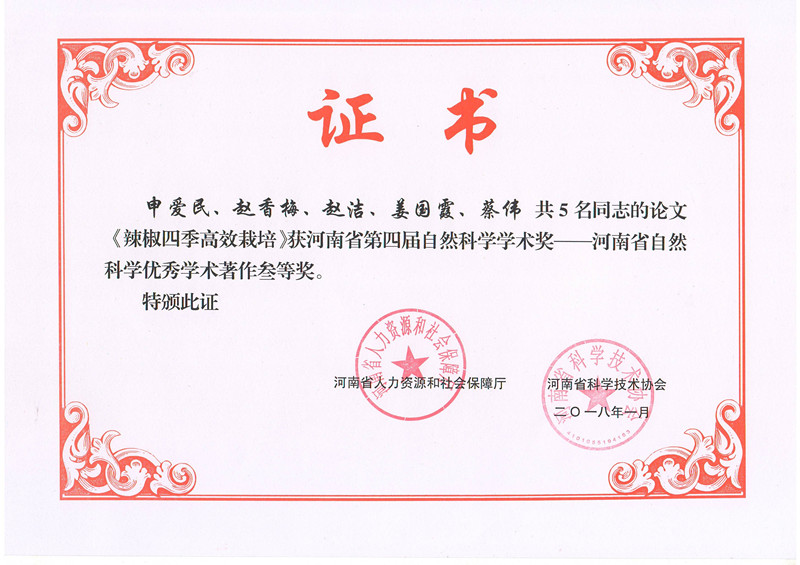 近日,河南省人力資源和社會保障廳、河南省科學技術協(xié)會對“河南省第四屆自然科學學術獎”獲得者進行了表彰。九三學社社員、鄭州市蔬菜研究所申愛民和趙香梅編著出版的《辣椒四季高效栽培》,鄭州市第一人民醫(yī)院張曉曼撰寫的《基質金屬蛋白酶-9基因一1 5 6 2 C/T多態(tài)性與缺血性腦卒中出血轉化的關系》分別榮獲河南省第四屆自然科學學術獎著作三等獎和優(yōu)秀論文三等獎。