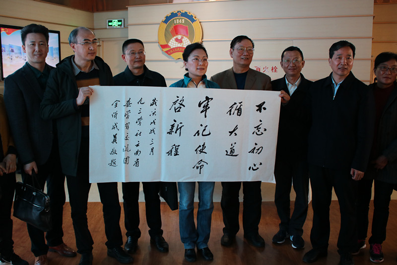 考察團(tuán)受鄭州政協(xié)文史館所感染,提筆留言:“不忘初心循大道,牢記使命啟新程”。