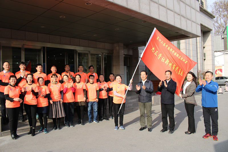 3月23日下午,第十二屆中國鄭開國際馬拉松賽九三學(xué)社鄭州市代表隊(duì)成立暨授旗儀式在鄭州舉行。儀式由九三學(xué)社河南省委專職副主委陳志民主持?!暗谑弥袊嶉_國際馬拉松賽--九三學(xué)社鄭州市代表隊(duì)”的旗幟由河南省政協(xié)副主席、九三學(xué)社河南省委主委張亞忠親自授予九三學(xué)社鄭州市代表隊(duì)隊(duì)長杜瑞峰。九三學(xué)社鄭州市委主委鄭高飛、專職副主委何艷麗等20余人參加了本次活動(dòng)。