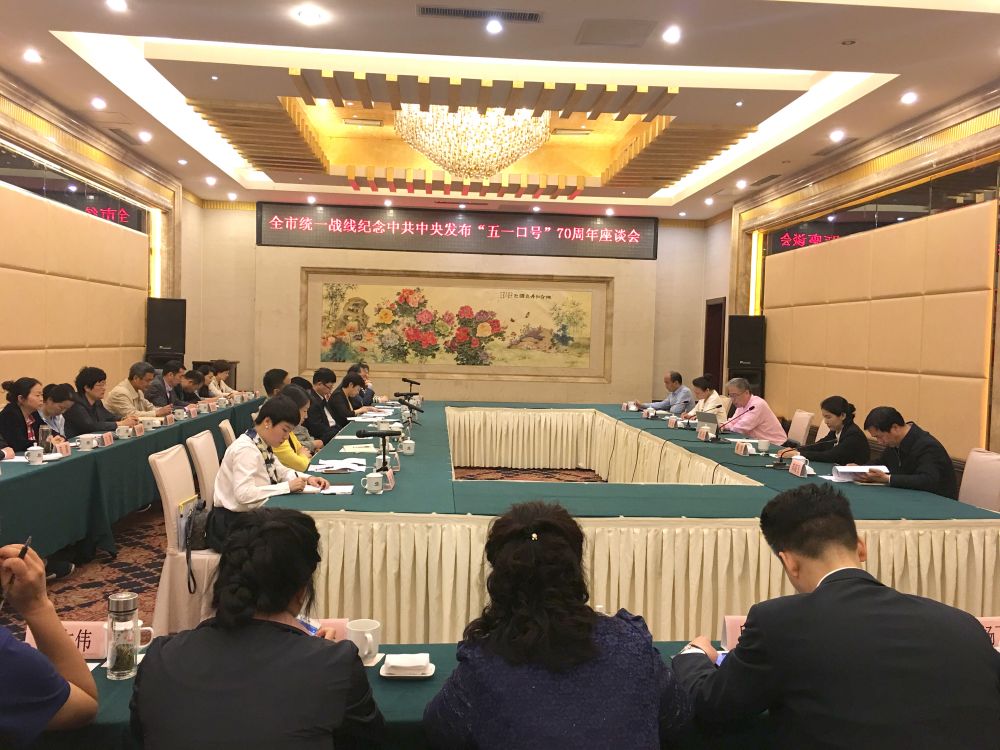 4月27日,全市統(tǒng)一戰(zhàn)線(xiàn)紀(jì)念中共中央發(fā)布“五一口號(hào)”70周年座談會(huì)在黃河飯店舉行。座談會(huì)由中共鄭州市委統(tǒng)戰(zhàn)部主辦,九三學(xué)社鄭州市委承辦。全國(guó)政協(xié)委員、九三學(xué)社中央委員會(huì)委員、九三學(xué)社中央思想建設(shè)研究中心副主任許進(jìn)應(yīng)邀參加座談并發(fā)言。中共鄭州市委統(tǒng)戰(zhàn)部副部長(zhǎng)王麗出席會(huì)議并講話(huà)。九三學(xué)社鄭州市委主委鄭高飛主持座談會(huì)。民革鄭州市委主委、鄭州市政府副市長(zhǎng)劉東,民盟鄭州市委主委郝偉、民進(jìn)鄭州市委主委趙學(xué)慶等參加座談會(huì)。