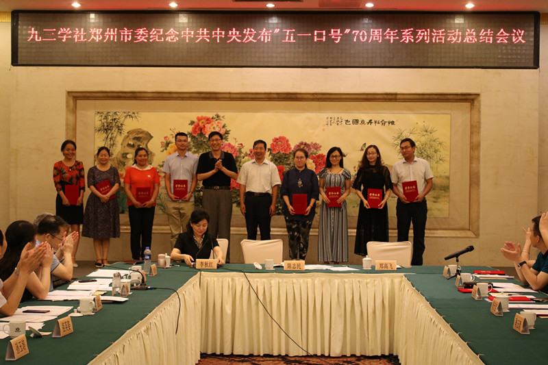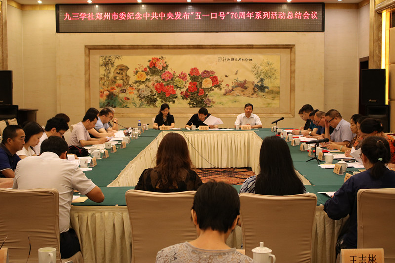 8月1日,九三學(xué)社鄭州市委在黃河飯店召開紀(jì)念中共中央發(fā)布“五一口號”70周年系列活動總結(jié)會。九三學(xué)社鄭州市委主委鄭高飛,副主委劉崇懷、李秋紅、黃萬新、何艷麗參加會議。會議由李秋紅主持。九三學(xué)社河南省委專職副主委陳志民、秘書長王治華應(yīng)邀出席會議。