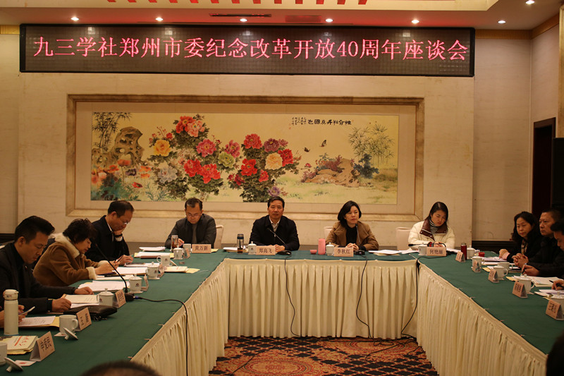 12月12日下午,九三學社鄭州市委在黃河飯店召開紀念改革開放40周年座談會。社市委主委鄭高飛,副主委李秋紅、黃萬新、何艷麗參加。會議由李秋紅主持。