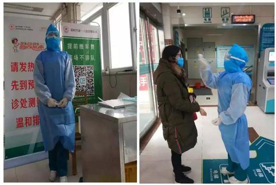 2月1日,王麗娟在發(fā)熱分診處為到訪患者測體溫。