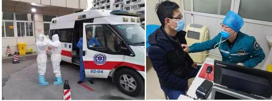 1月29日,朱帥科在醫(yī)院急診科穿著防護(hù)服緊急出診,接診患者。