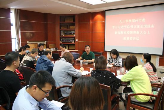 9月22日,九三學(xué)社鄭州市委在市政協(xié)六樓會(huì)議室召開(kāi)會(huì)議,學(xué)習(xí)習(xí)近平總書(shū)記在全國(guó)抗擊新冠肺炎疫情表彰大會(huì)、科學(xué)家座談會(huì)上的重要講話精神。社鄭州市委主委鄭高飛出席會(huì)議并講話。會(huì)議由社鄭州市委專(zhuān)職副主委何艷麗主持。
