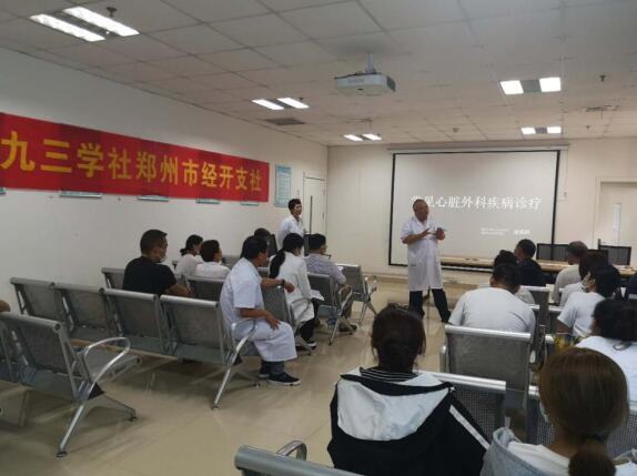 7月22日,九三學(xué)社鄭州市經(jīng)開(kāi)支社(鄭州市第七人民醫(yī)院支社)為經(jīng)開(kāi)區(qū)村醫(yī)舉辦“心臟外科疾病診治”專題講座,主講人為支社社員、鄭州市第七人民醫(yī)院心臟外科一病區(qū)副主任潘硯鵬。經(jīng)開(kāi)支社主委陳紅衛(wèi),副主委張聰敏、查瀟逸,社員邵彩霞、周麗娜、于慧娟等參加此次講座。