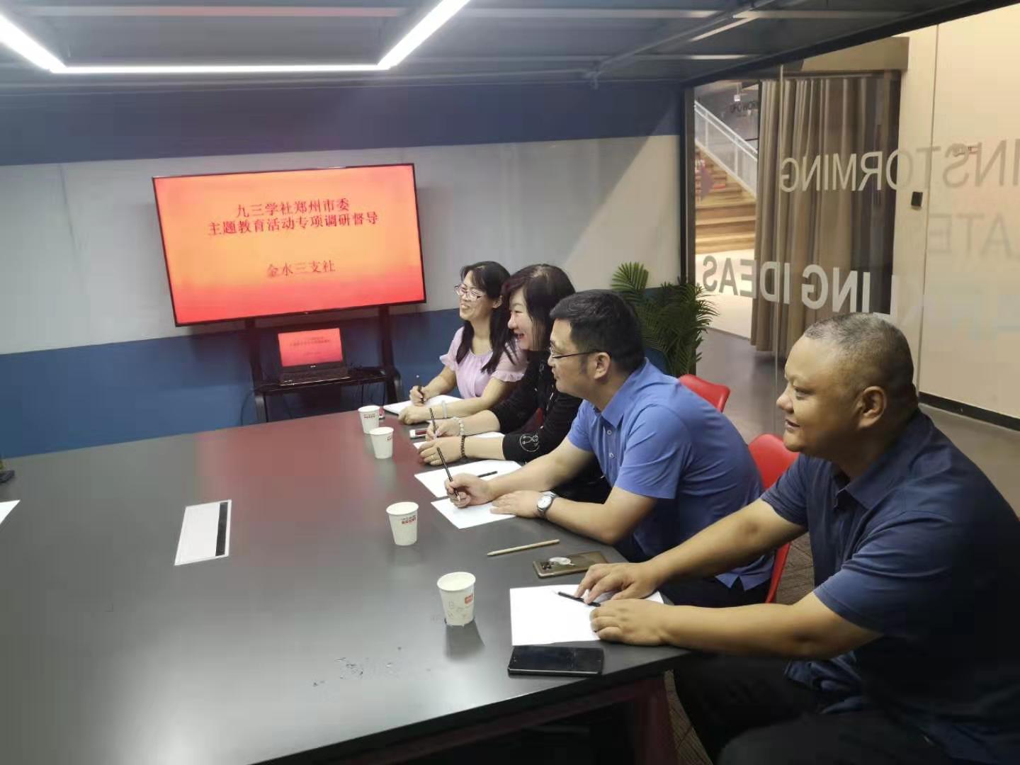 9月30日,九三學社鄭州市委主委鄭高飛,社市委委員王霞、張祖勤一行到金水三支社調(diào)研督導“不忘合作初心,繼續(xù)攜手前進”主題教育活動。金水三支社副主委張永明、羅志偉、楊春,秘書任明哲參加調(diào)研督導座談。
