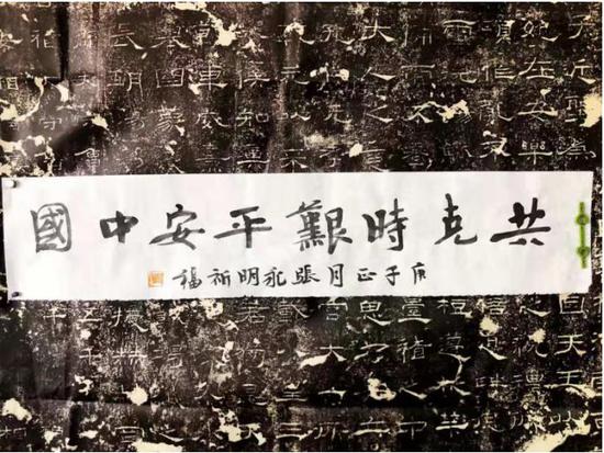 圖為張永明(鄭州市書(shū)法協(xié)會(huì)會(huì)員、嵩山書(shū)畫(huà)院特聘書(shū)畫(huà)家)作品《共克時(shí)艱 平安中國(guó)》