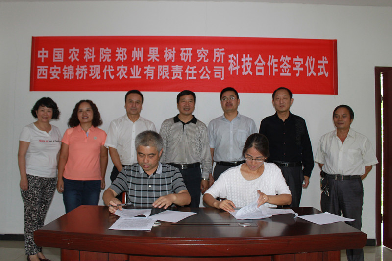 中國(guó)農(nóng)業(yè)科學(xué)院鄭州果樹(shù)研究所和西安錦橋墩現(xiàn)代農(nóng)業(yè)有限責(zé)任公司作為鄭西科技合作首批技術(shù)推廣合作單位,由雙方代表劉崇懷、趙純望簽定合作協(xié)議,主要內(nèi)容為:由中國(guó)農(nóng)科院鄭州果樹(shù)研究所和西安錦橋現(xiàn)代農(nóng)業(yè)有限責(zé)任公司對(duì)口聯(lián)系,并為公司所屬的五泉玉葡萄科技示范園制定園區(qū)規(guī)劃、提供葡萄生產(chǎn)技術(shù)服務(wù),推動(dòng)該服務(wù)點(diǎn)利用新品種、新技術(shù)、新方法,使葡萄生產(chǎn)種植更加科學(xué),產(chǎn)量增加,品質(zhì)提高,收入穩(wěn)步增長(zhǎng),可持續(xù)發(fā)展能力明顯增強(qiáng)。